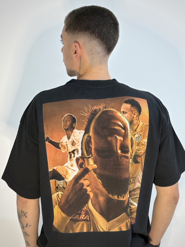Modelagem e Tecido A camiseta tem modelagem quadrada e ampla, no estilo oversized, que oferece um visual moderno e despojado. É confeccionada em malha grossa e robusta, transmitindo qualidade logo ao toque. Passa por processos de amaciamento, lavagem comfort e estonagem, garantindo maciez, conforto e um aroma agradável. A gola é do tipo 2×1, estruturada e firme, valorizando ainda mais o caimento premium. Estampa Frontal Na parte da frente, no lado esquerdo do peito, há um detalhe discreto com a logo da Louco Santista em preto, trazendo identidade e autenticidade à peça. Estampa Traseira O grande destaque está nas costas: uma arte em tons alaranjados e quentes, composta por uma colagem com imagens de Neymar Jr. em momentos marcantes pelo Santos. Em primeiro plano, o close do atleta vibrando transmite intensidade e emoção. Essa estampa cria impacto visual e reforça a paixão pelo clube. Uma peça que une conforto premium, estilo streetwear e a energia única de ser santista — perfeita para quem gosta de vestir sua paixão de forma ousada.